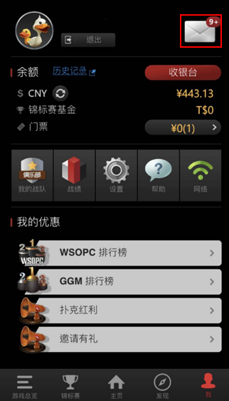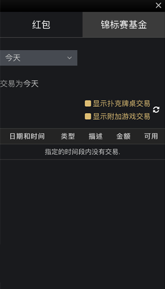 历史纪录:可以查询任何系统自动派发的奖励,比赛买入,牌桌买入等资讯,如有任何游戏退款,也会显示在此功能页面。