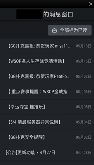 从战绩功能进入后,该功能提供您查询您历史的游戏记录、锦标赛名次,每手牌的游戏记录。