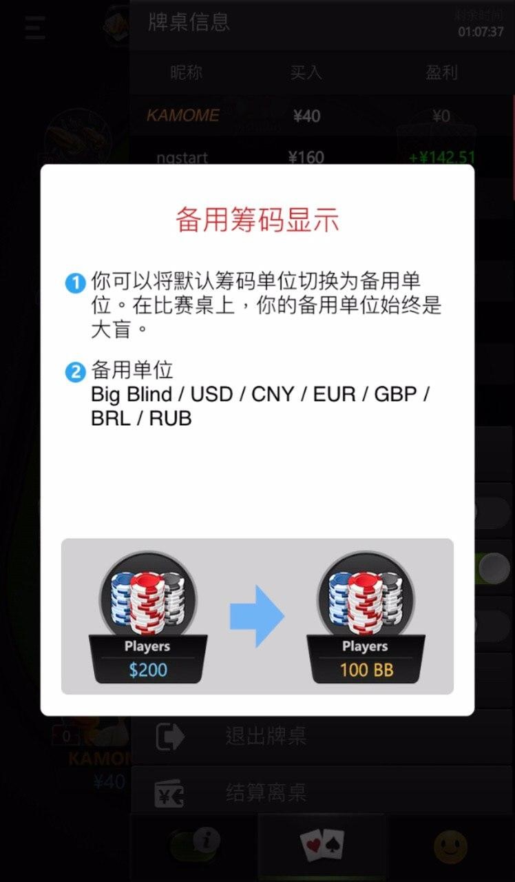 玩家可以使用此功能将默认筹码单位切换为大盲数。