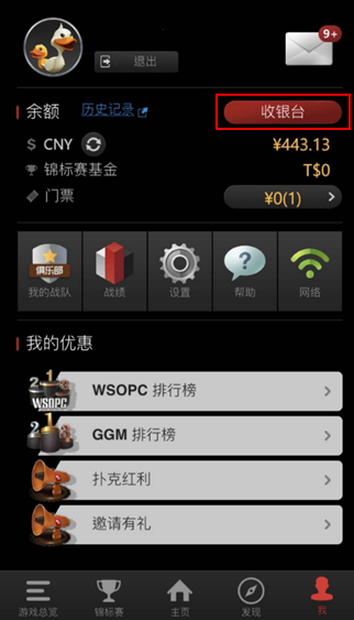 您可以点选游戏中”收银台”按钮,跳转到网页会员中心