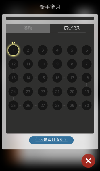 自第一次登录起将提供7天的开始蜜月选项,您需要在游戏页面”我”的下方,透过新手蜜月按钮启动任务。